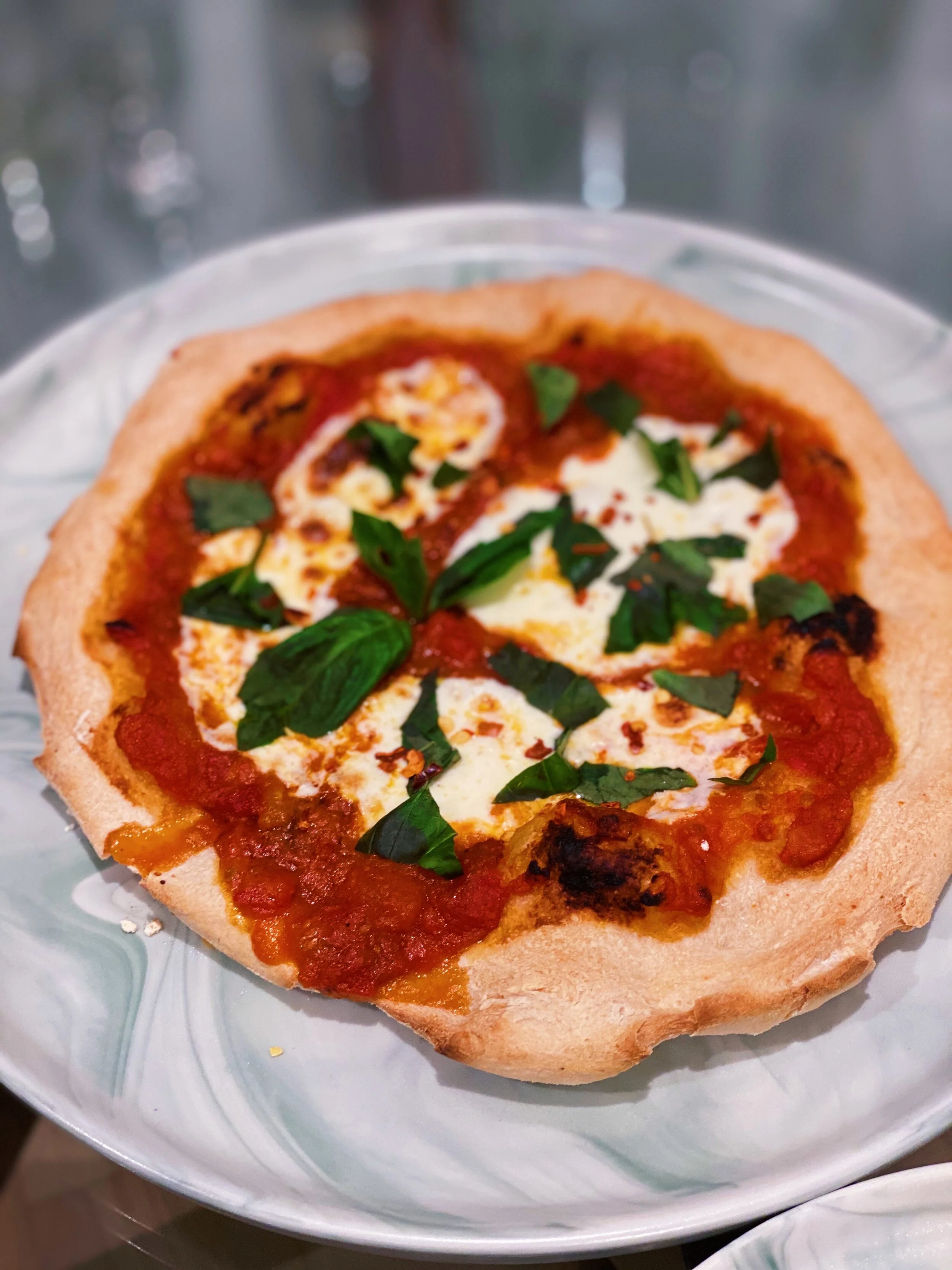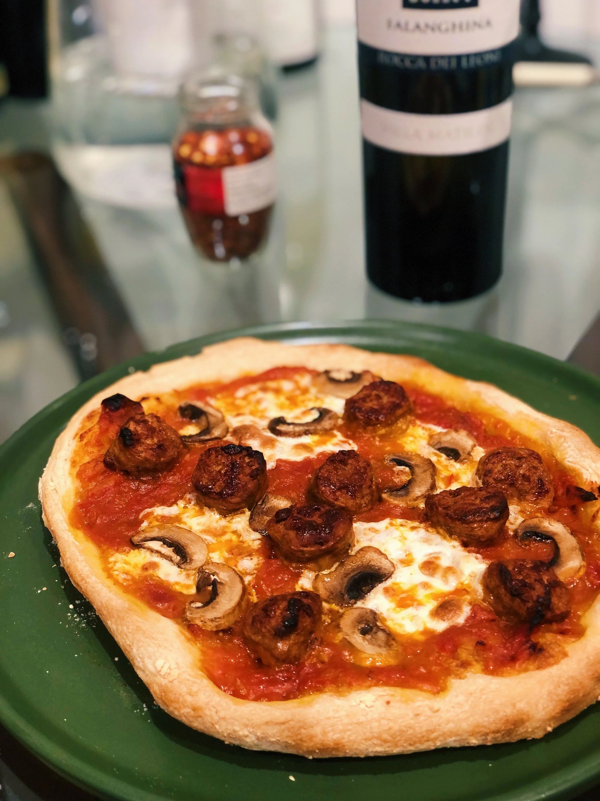 Lu doesn’t feel like a distant friend, she’s as near and as far as anyone in my life. Recently she posted a mouthwatering photo of a pizza she’d made. We laughed about the horrific French cracker pizza, and she sent me her wonderful recipe below, which yielded a crispy, pillowy crust. Making my friend’s recipe and showing her the photos felt like we were sharing a meal. In the way of the new world, we were.